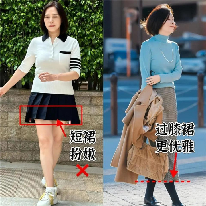 或者是说人到中年还要刻意装嫩,选择下面这种黑色的短裙,确实能形成下半身失踪的穿搭技巧,就算你的腿不是比较粗的类型,这样穿也不符合奔五奔六的年龄。